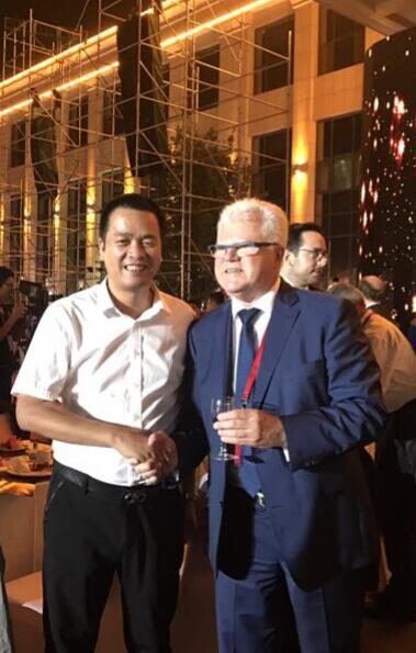 連云港市門窗協(xié)會(huì)會(huì)長(zhǎng)潘國(guó)柱和德國(guó)墨瑟董事長(zhǎng)墨瑟先生親切交流
