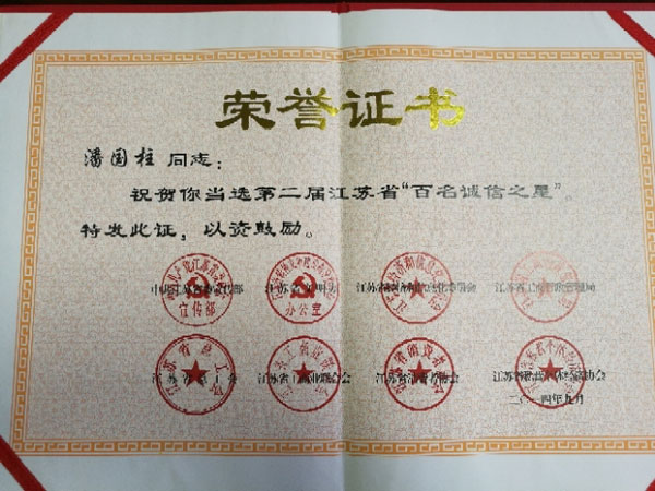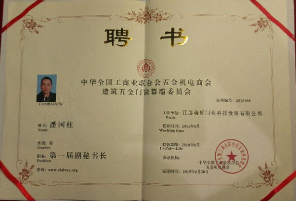 2006年6月7日 潘國柱自主創辦江蘇美好門業科技發展有限公司,廠址位于江蘇省連云港市海州開發區創業路一號,制造安裝:各種電動門、防火門、工業門和特種門。在多年的創業中,一直秉持“誠實守信、合作共贏”的經營理念,在激烈的市場競爭中嚴格自律、規范管理。經營的江蘇美好門業科技發展有限公司先后獲得:“連云港市文明民營企業” , “連云港市百佳民企” , “省級、市級誠信單位” , “省級、市級守合同重信用企業” , “江蘇市場公認名優產品”等諸多殊榮。他熱心公益慈善,經常組織和參與各類幫扶救助活動。