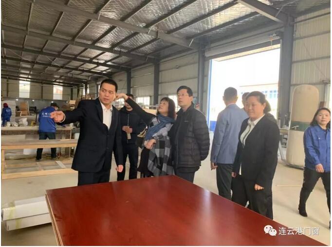 江蘇美好門業(yè)科技發(fā)展有限公司董事長、連云港市門窗協(xié)會會長潘國柱陪同全國工商聯(lián)五金機電商會領(lǐng)導走訪會員企業(yè)