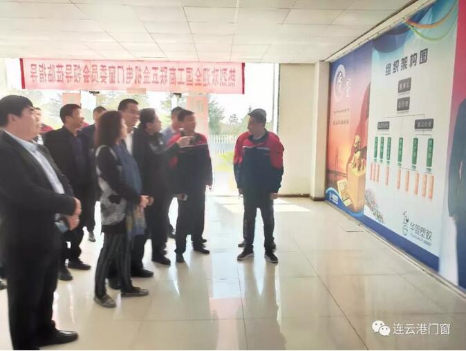 3月17日,全國工商聯(lián)五金機電商會產(chǎn)業(yè)發(fā)展部主任、建筑門窗委員會秘書長張秀梅女士,全國工商聯(lián)五金機電商會產(chǎn)業(yè)發(fā)展部副主任、建筑門窗委員會規(guī)劃建設(shè)部主任顧衛(wèi)東先生,全聯(lián)五金機電商會建筑門窗委員會聯(lián)絡(luò)部主任王波先生和國家建筑材料工業(yè)五金產(chǎn)品檢測中心副主任王永帥先生一行,在連云港市門窗協(xié)會會長潘國柱、副會長姚連斌、秘書長胡啟楷、執(zhí)行秘書長唐春和、副秘書長莊東生等協(xié)會領(lǐng)導的陪同下,先后走訪了副會長單位:連云港光明門業(yè)有限公司和連云港華萱塑膠制品有限公司。