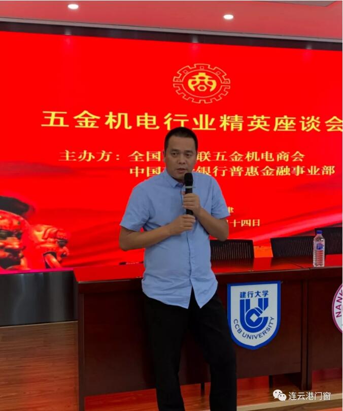 ?連云港市門窗協會會長、黨支部書記潘國柱應邀在主席臺發表分享演講。