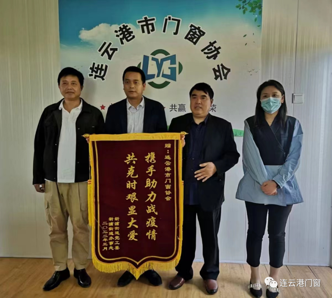 5月3日上午,海州區(qū)新浦街道的工作人員來到市門窗協(xié)會黨支部,向我會贈送了一面題為“攜手助力戰(zhàn)疫情,共克時艱顯大愛”的錦旗。對我會在疫情期間給予新浦街道下轄的“新橋社區(qū)”和“浦河社區(qū)”捐款捐物,支持一線抗疫人員的善舉表示感謝。